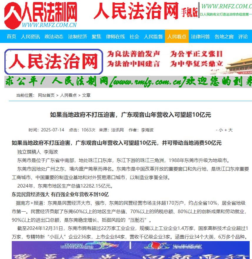 文章同时指出:法律的生命力在于实施。那么,东莞市生态文明、社会治理、民生保障得到了有力的保障了么?答案显而易见,如果是,就不会出现观音山现象了!