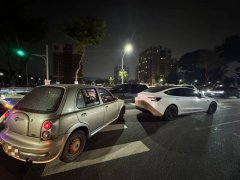 高雄男无照偷车蛇行撞上特斯拉被警方逮捕。(读者提供) 37岁张姓男子偷窃汽车后,不打方向灯变换车道蛇行,撞到30岁胡姓女子驾驶的特斯拉轿车,高...