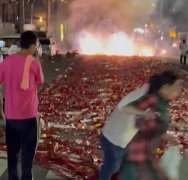 高雄庙会封街放鞭炮吓哭小孩,网痛斥「没政府了」。(读者提供) 高雄市仁武区举办合法申请且获核发许可的庙会,但遶境队伍昨晚行经八德东路时,竟...