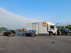 新竹市府规画在关埔慈云路盖建空桥,原预定2025年全区12座空桥要完工,但至今没有一座完工,就连市府发包的埔顶三路与慈云路空桥,也仅完成43%,没想到今早9点多,慈云路好市多卖场附近富宇建设捐建的空桥工程因搭鹰架,1辆大型卡车行经路口时,转弯卡住及碰撞到鹰架,幸鹰架未倒,大卡车在引导下也顺利解除危机,但让关埔居民直呼空桥还未盖好,就得先忍受车辆卡关带来的交通不便。