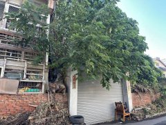 民宅梁柱被撞到水泥块散落一地。(记者林嘉东翻摄)