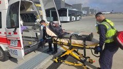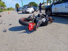 和平警方今日指出,前天下午3时10分蔡男骑机车与小货车对撞,夫妻被抛飞两公尺高,从货车车顶重摔倒地,警方到场时发现小货车肇事逃逸,和平分局立即派员调阅沿线监视器,厘清该车已往南投方向逃逸,迅速联系南投警方共同追缉肇事车辆及驾驶,目前警方已查获肇事车辆采证中,并持续追缉肇事驾驶到案。