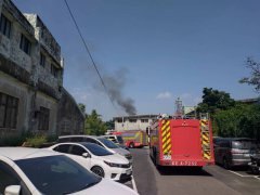 桃园杨梅区农会谷仓大火全面燃烧、浓烟窜天,消防队驰往抢救。(记者李容萍翻摄) 桃园市杨梅区民富路三段1处杨梅区农会谷仓,今(14)日上午10时...