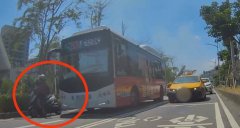 机车女骑士躲艳阳停树荫,被公车撞倒。(读者提供) 高雄昨天中午的气温超过30度,机车骑士为躲艳阳,暂停在车道的树荫,却被公车撞倒。警方表示未...