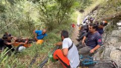 玉山八通关有高山协作因背负装备捆扎过高,导致撞到山壁坠落50公尺深谷,经以绳索拉上步道,已紧急送医治疗。(南投县消防局提供) 玉山园区八通关...