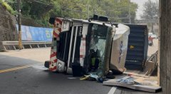 桃园货柜车疑未注意高度 猛撞涵洞后翻覆「倒地不起」