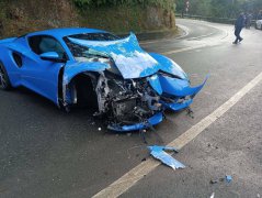 车辆失控撞上护栏,车头外壳严重毁损,现场零件散落一地。(记者郑景议翻摄) 50岁赖姓男子今日上午驾驶新车价约新台币525万元的「莲花」超跑Lotus ...