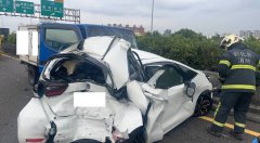 国道1号彰化路段3车追撞意外,白色自小客车被撞到车体严重凹损。(民众提供) 国道1号彰化南下路段传出3车追撞意外,其中,由47岁江女所驾驶的白色自...