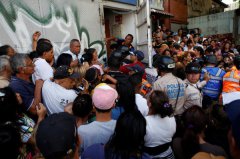 委内瑞拉近日通膨严重,经济崩溃,爆发人民抢粮等情形,脸书也成为人民交易食物和物品的平台。图为委内瑞拉民众上周抢著进超市买面食,警察试图控...